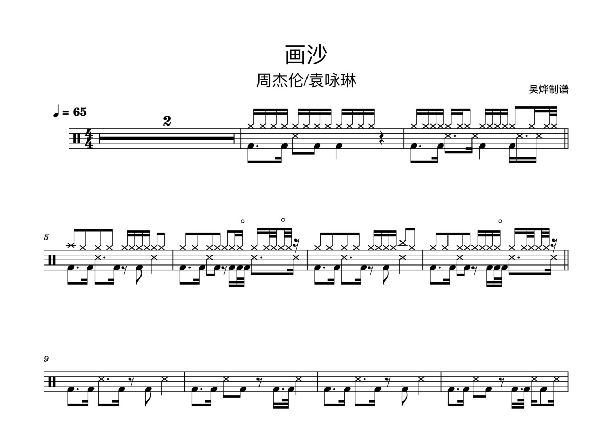 袁咏琳、周杰伦《画沙》鼓谱 - 架子鼓谱