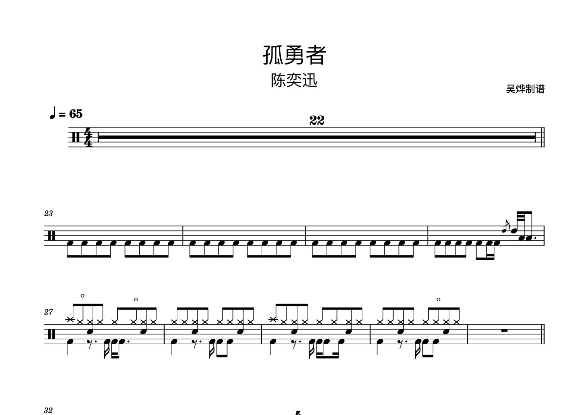 陈奕迅《孤勇者》鼓谱 - 架子鼓谱