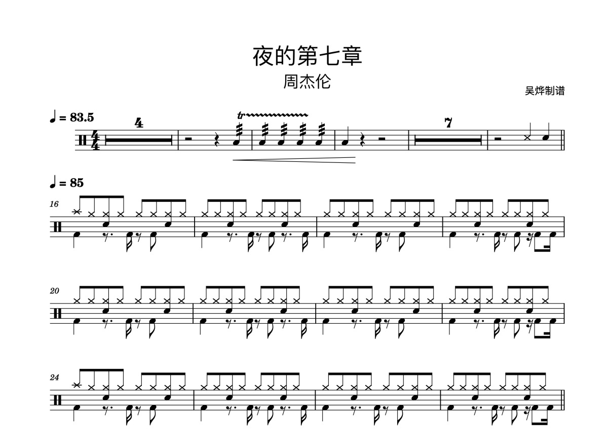 周杰伦《夜的第七章》鼓谱 - 架子鼓谱