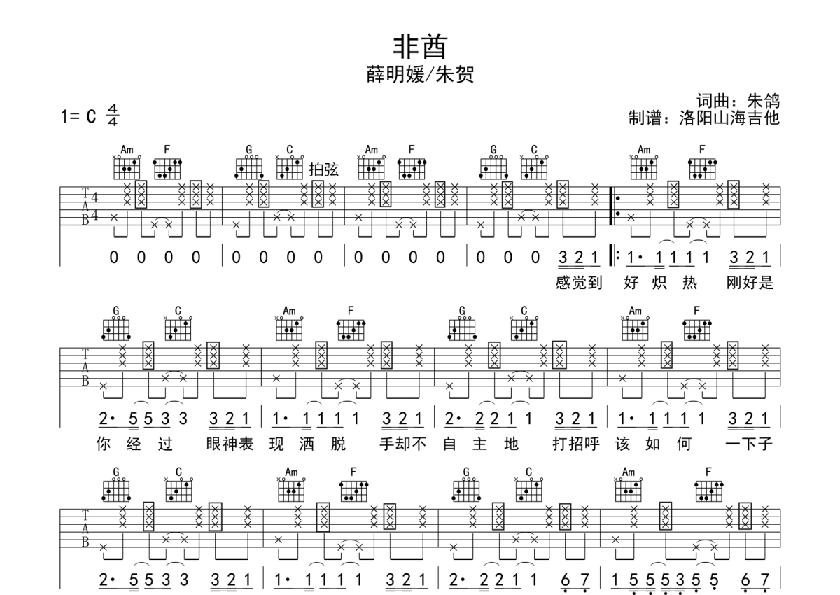薛明媛/朱贺《非酋》吉他谱 - C调弹唱六线谱