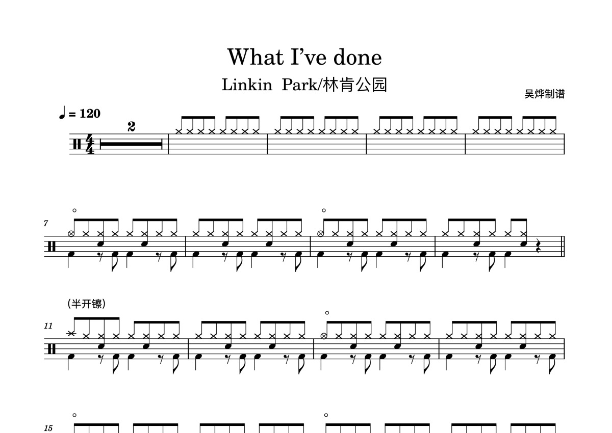 Linkin Park 林肯公园《What I've Done》鼓谱 - 架子鼓谱