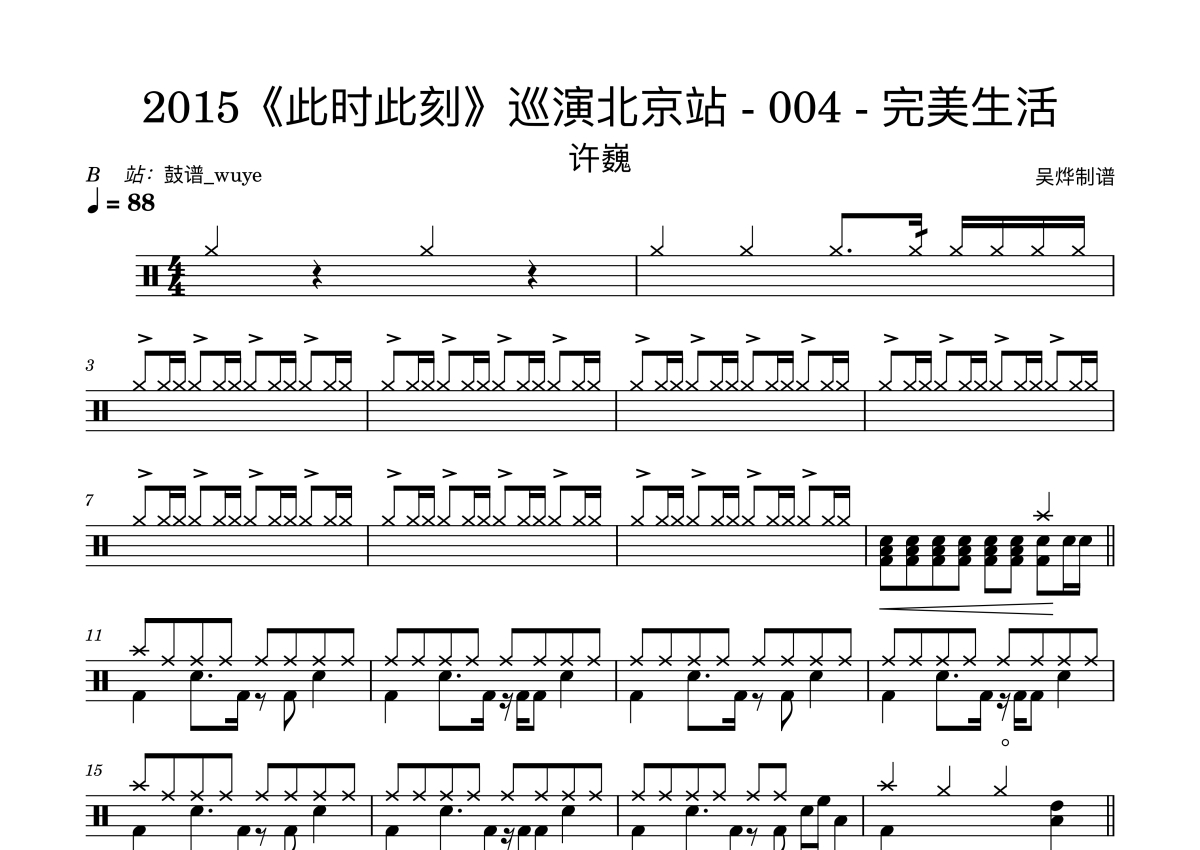 许巍《完美生活》鼓谱 - 架子鼓谱 - LIVE