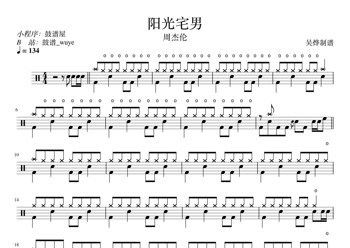 周杰伦《阳光宅男》鼓谱 - 架子鼓谱