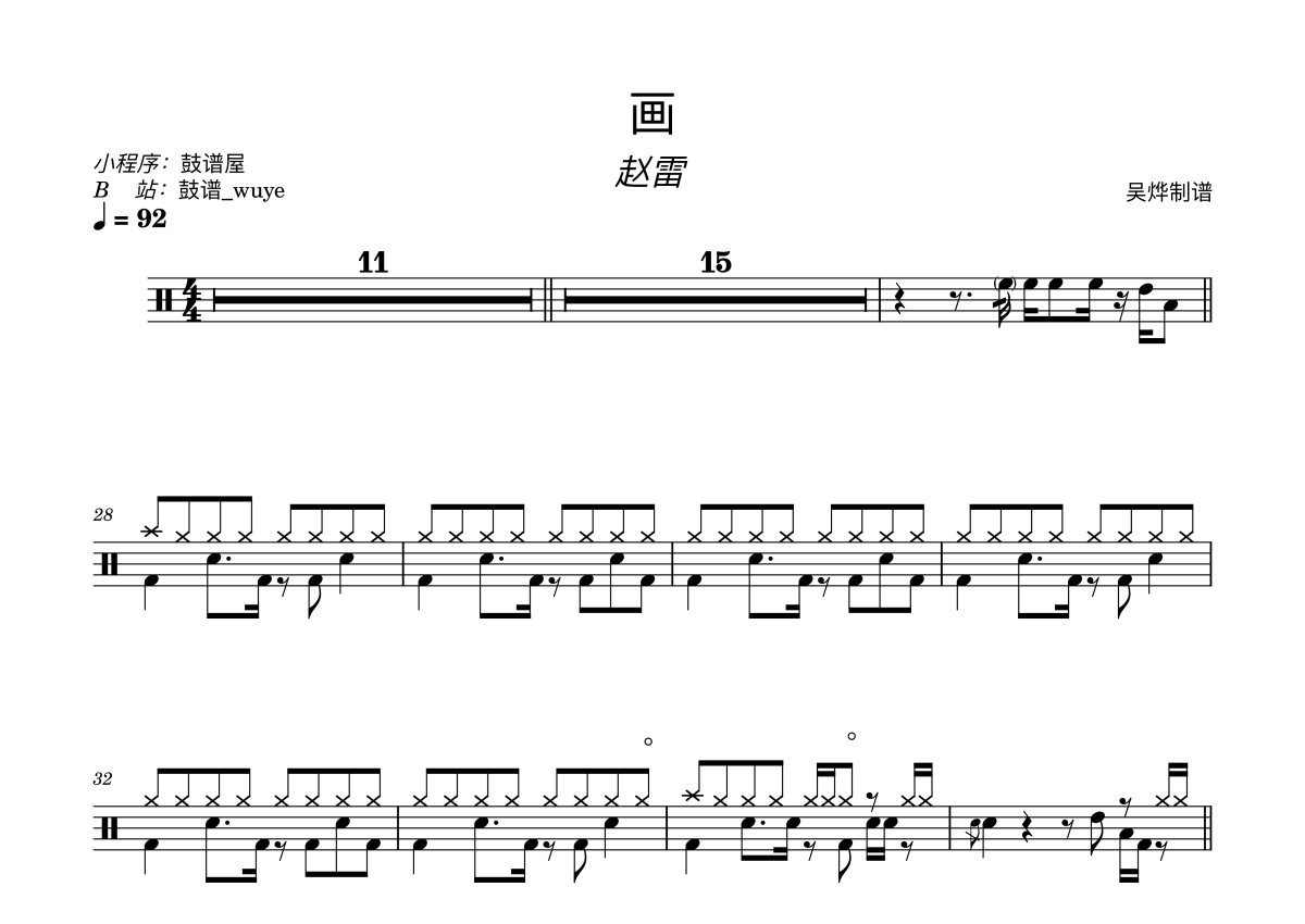赵雷《画》鼓谱 - 架子鼓谱