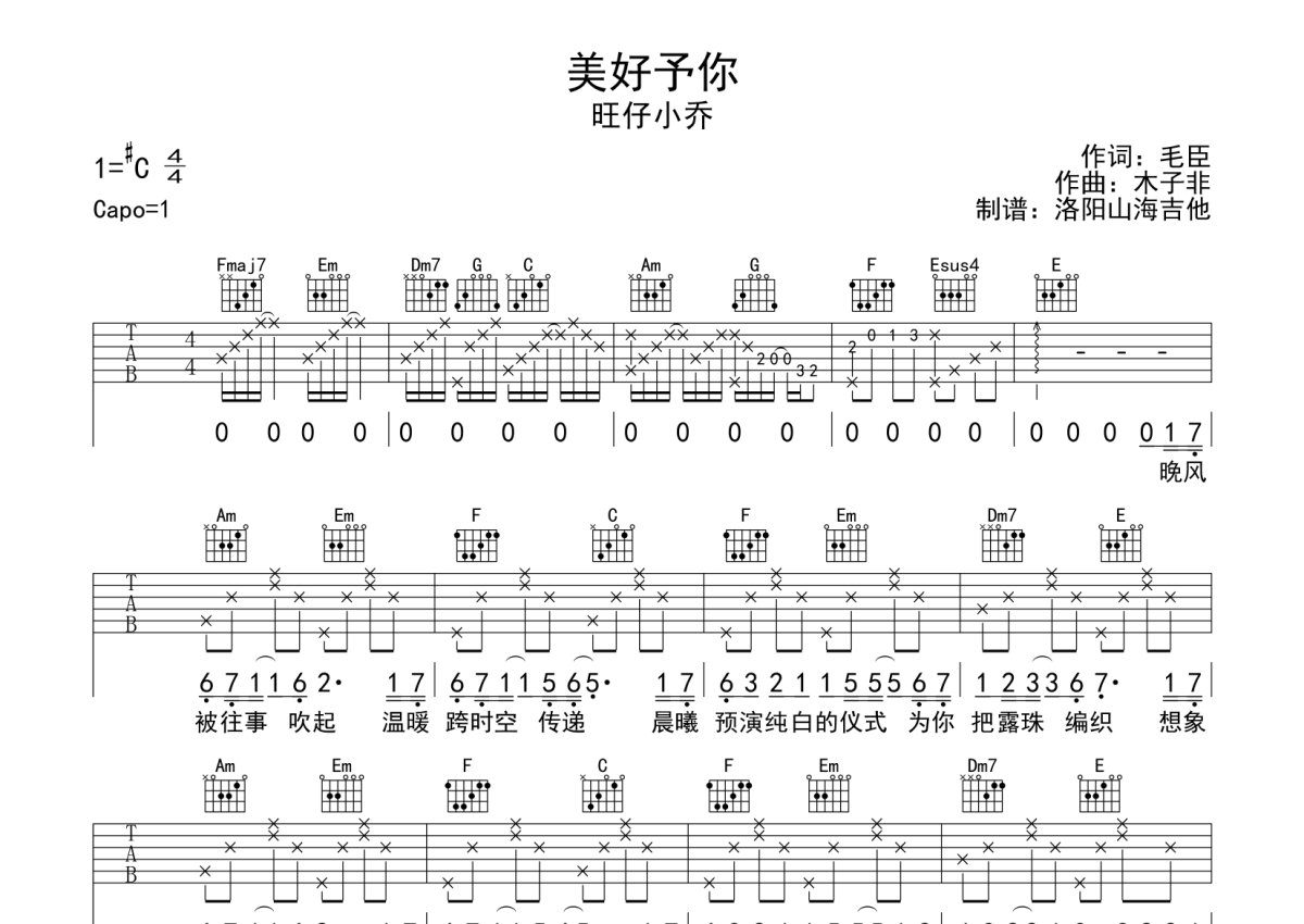 旺仔小乔《美好予你》吉他谱 - C调弹唱六线谱