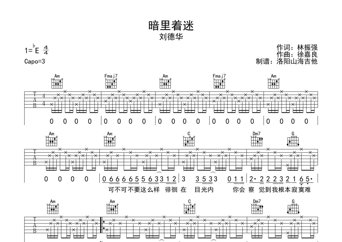 刘德华《暗里着迷》吉他谱 - C调弹唱六线谱
