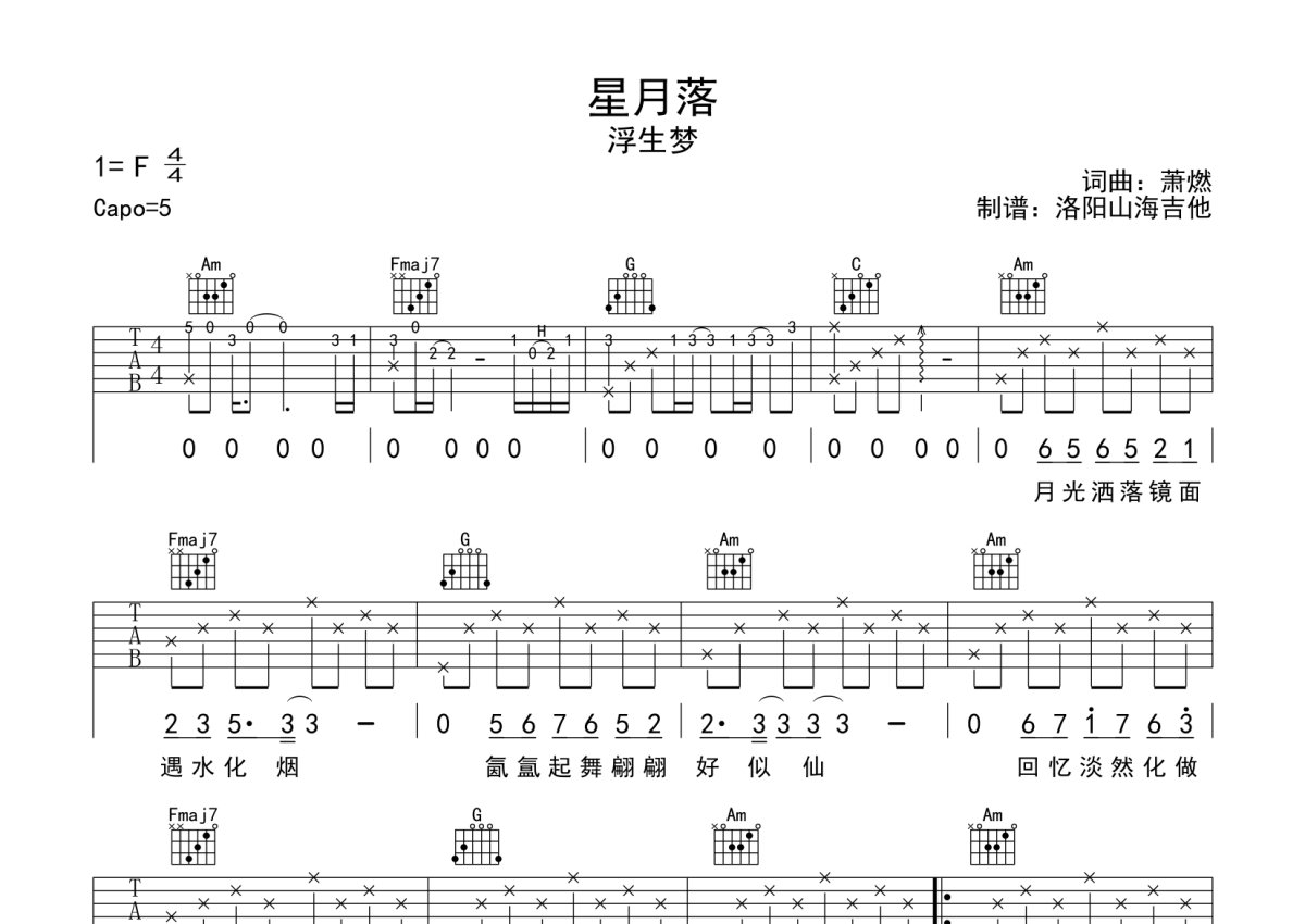 浮生梦《星月落》吉他谱 - C调弹唱六线谱