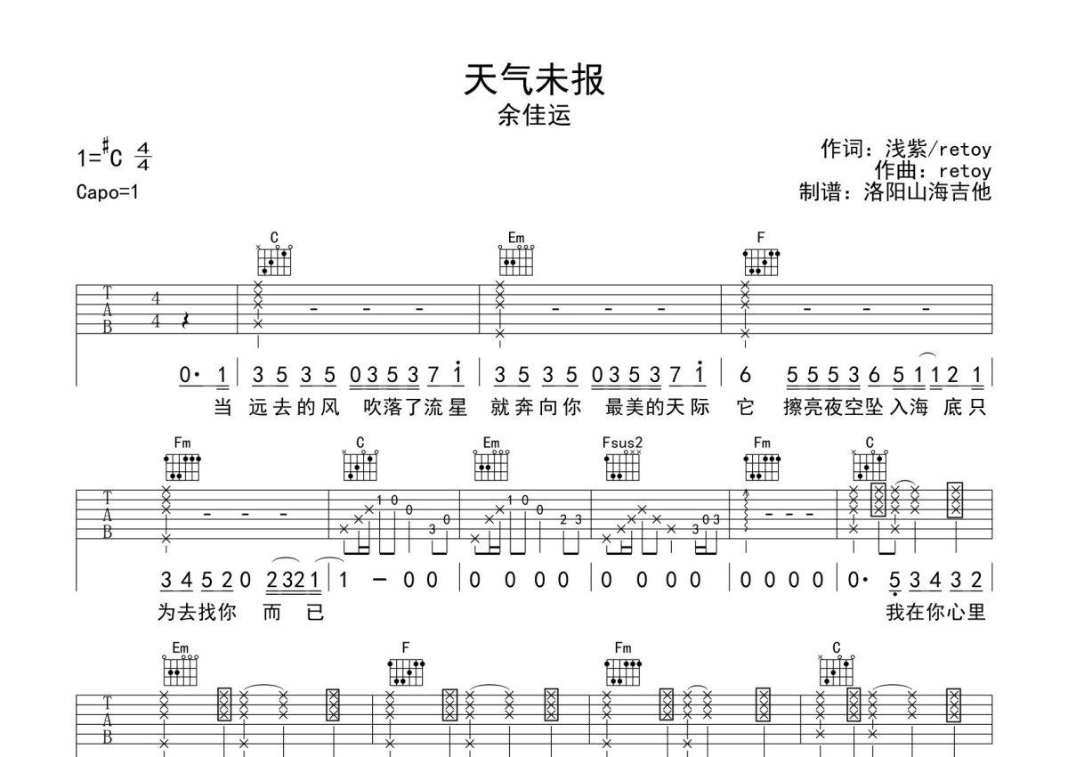 余佳运《天气未报》吉他谱 - C调弹唱六线谱