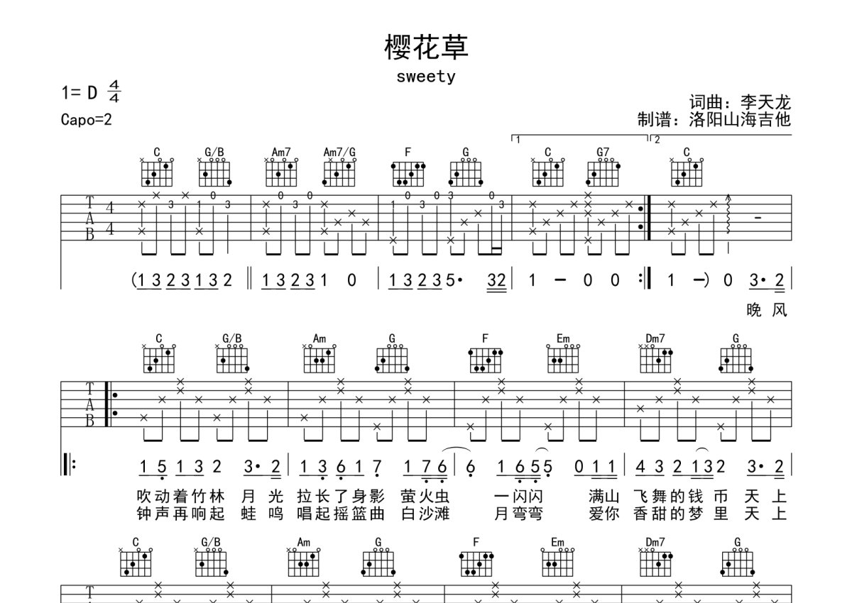 sweety《樱花草》吉他谱 - C调弹唱六线谱