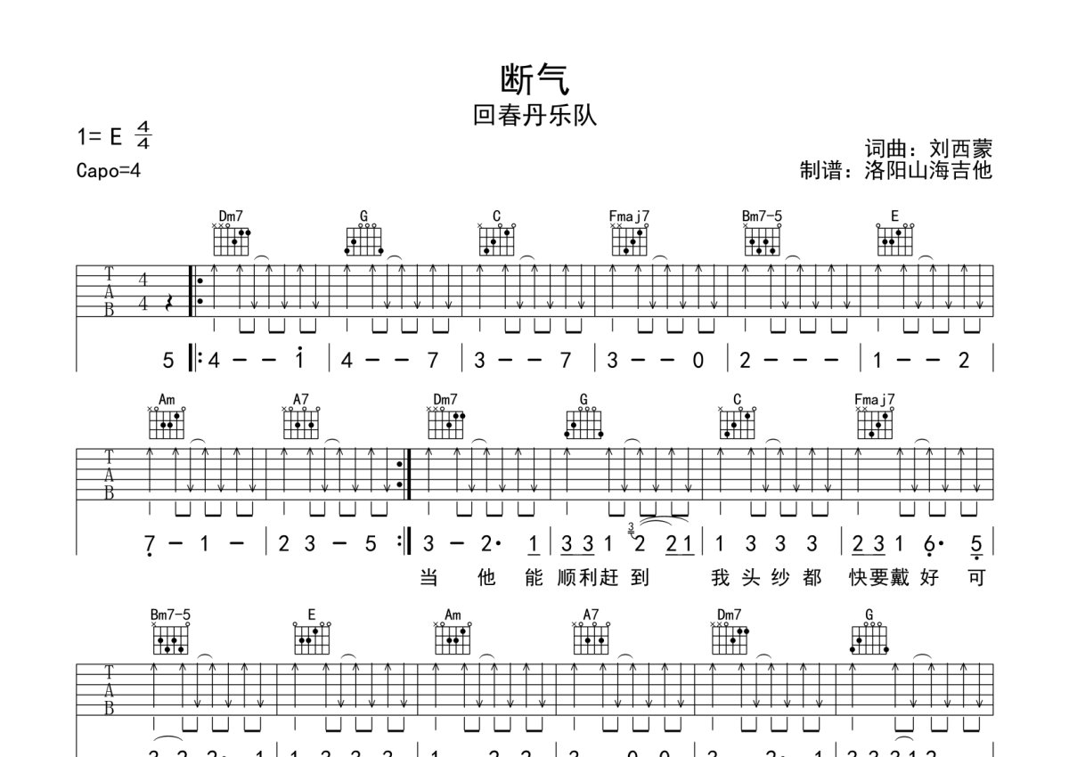 回春丹《断气》吉他谱 - C调弹唱六线谱