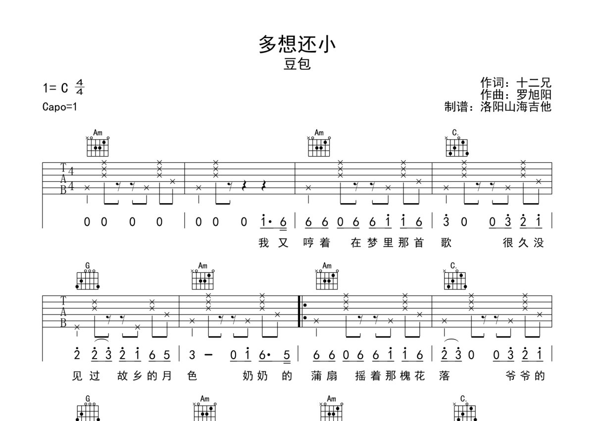 豆包《多想还小》吉他谱 - C调弹唱六线谱