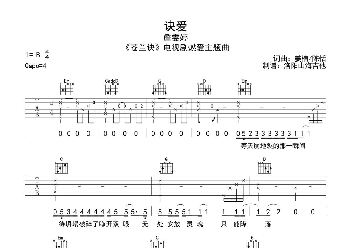 詹雯婷《诀爱》吉他谱 - G调弹唱六线谱