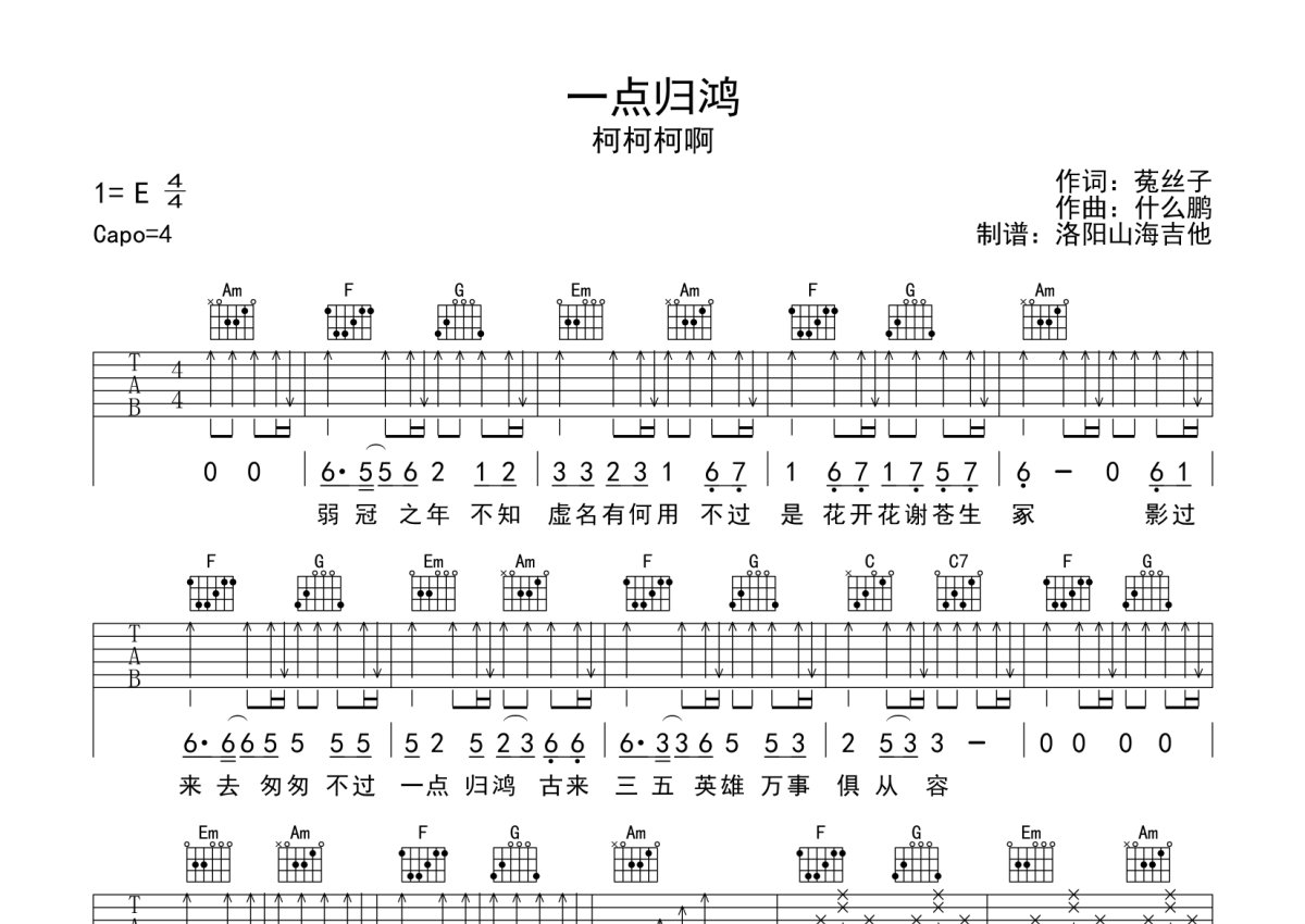 柯柯柯啊《一点归鸿》吉他谱 - C调弹唱六线谱
