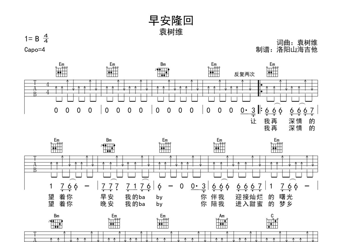 袁树维《早安隆回》吉他谱 - G调弹唱六线谱