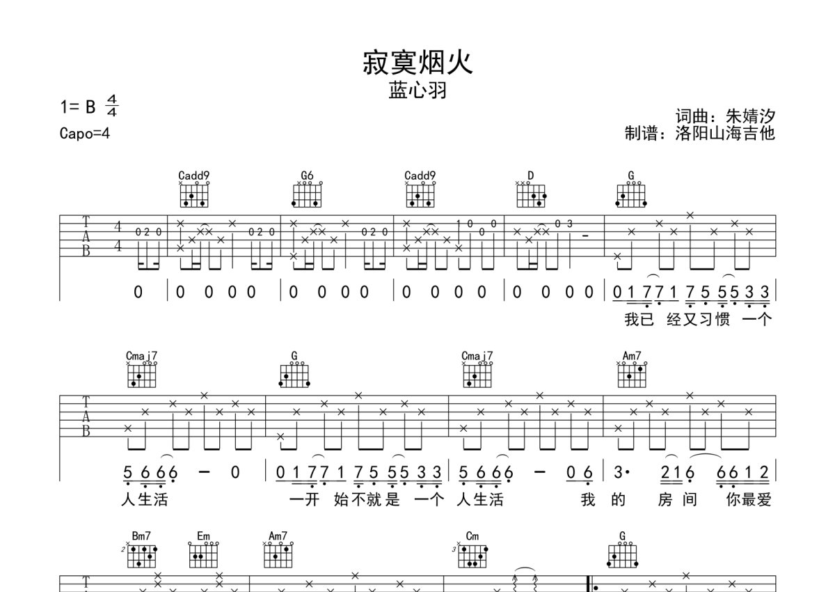 蓝心羽《寂寞烟火》吉他谱 - G调弹唱六线谱