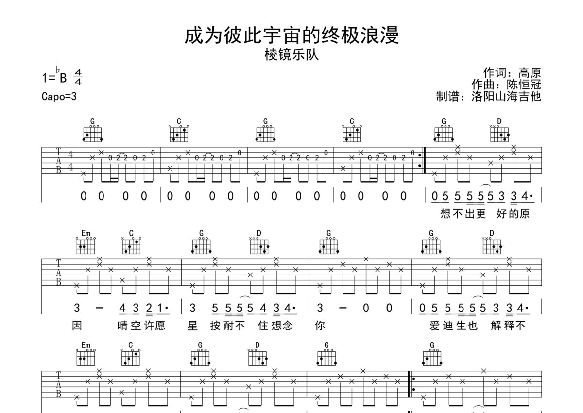 棱镜《成为彼此宇宙的终极浪漫》吉他谱 - G调弹唱六线谱