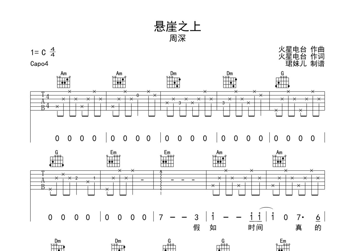 周深《悬崖之上》吉他谱 - C调弹唱六线谱