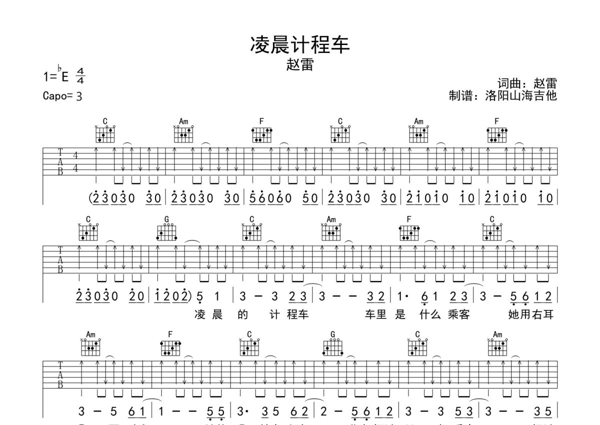 赵雷《凌晨计程车》吉他谱 - C调弹唱六线谱