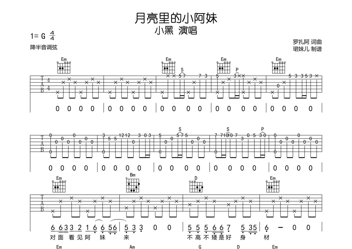 小黑《月亮里的阿妹》吉他谱 - G调弹唱六线谱