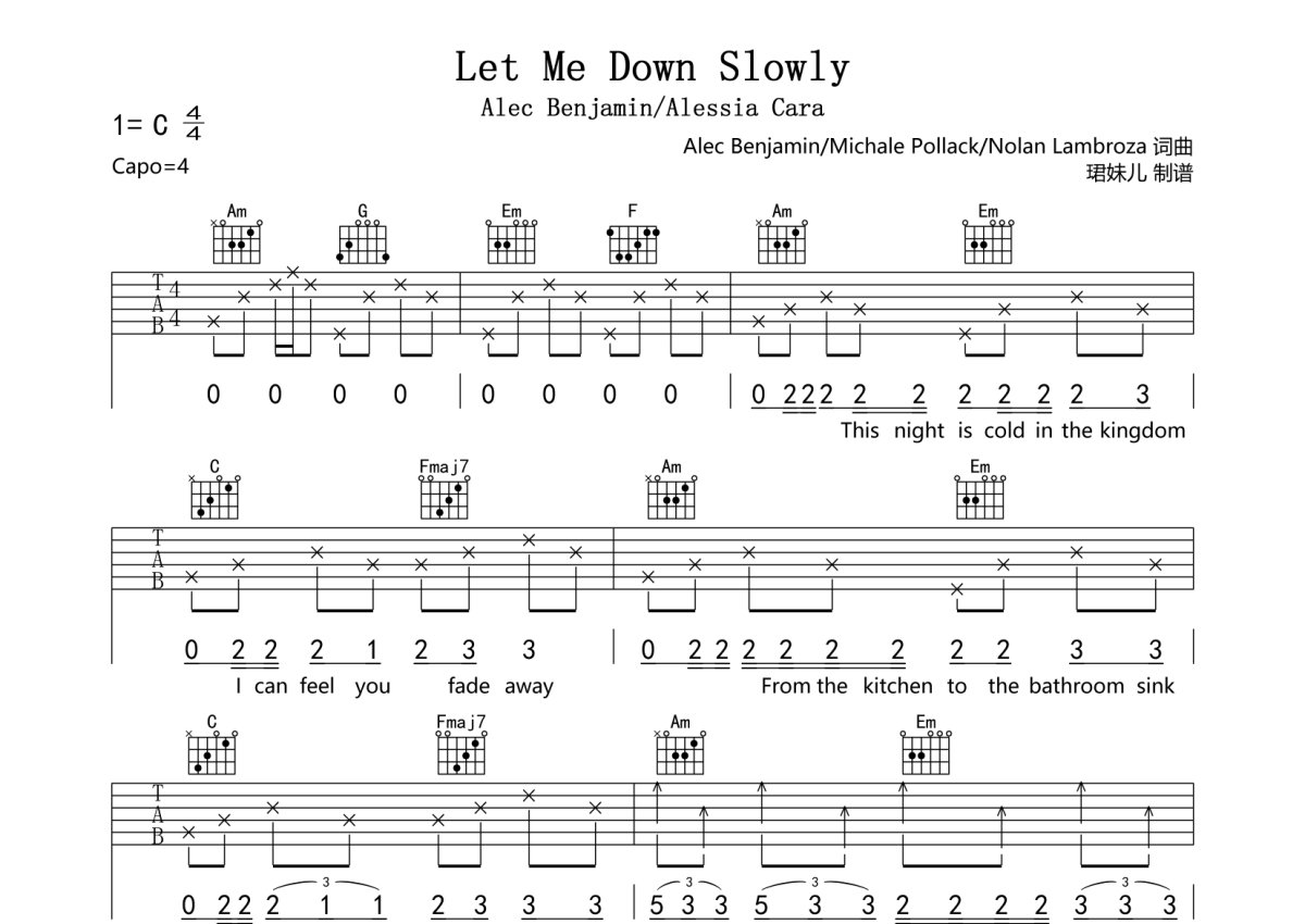 Alec Benjamin/Alessia Cara《Let Me Down Slowly》吉他谱 - C调弹唱六线谱
