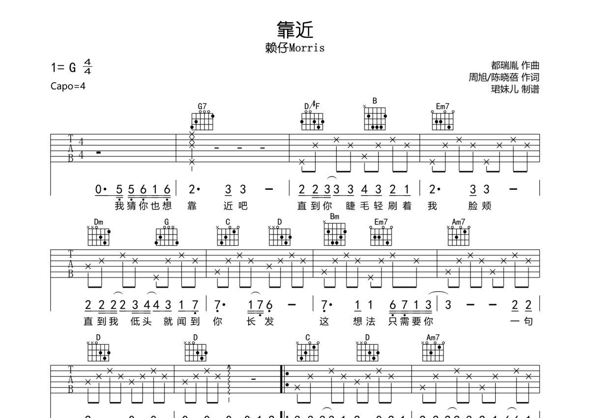 赖仔Morris《靠近》吉他谱 - G调弹唱六线谱