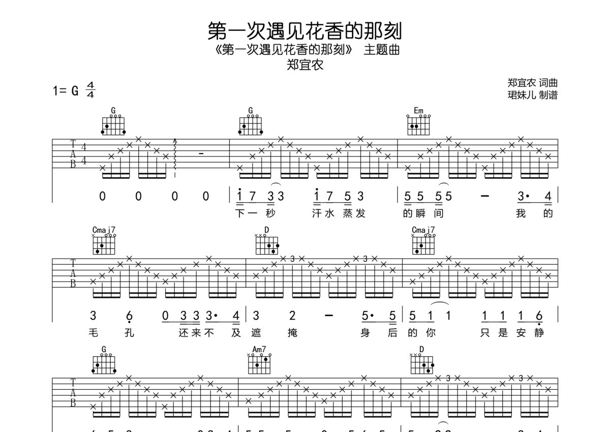 郑宜农《第一次遇见花香的那刻》吉他谱 - G调弹唱六线谱