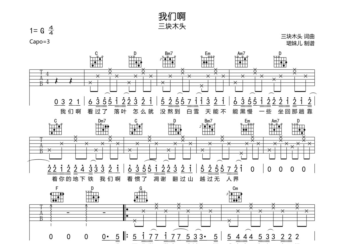 三块木头《我们啊》吉他谱 - G调弹唱六线谱