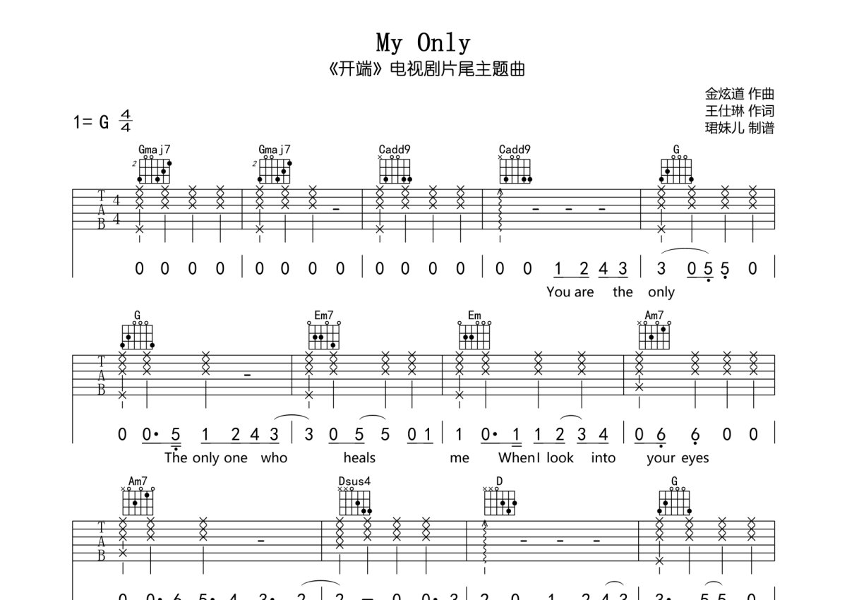 周深《My Only》吉他谱 - G调弹唱六线谱