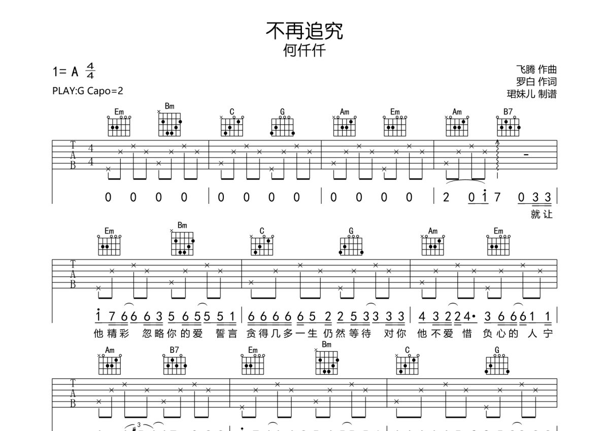 何仟仟《不再追究》吉他谱 - G调弹唱六线谱