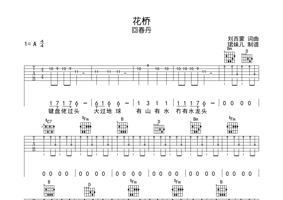 回春丹《花桥》吉他谱 - A调弹唱六线谱