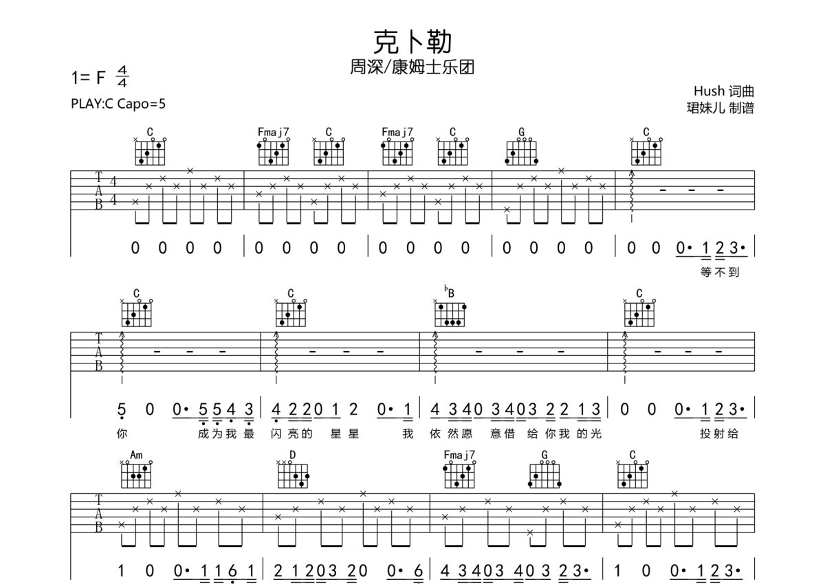 周深/康姆士乐团《克卜勒》吉他谱 - C调弹唱六线谱