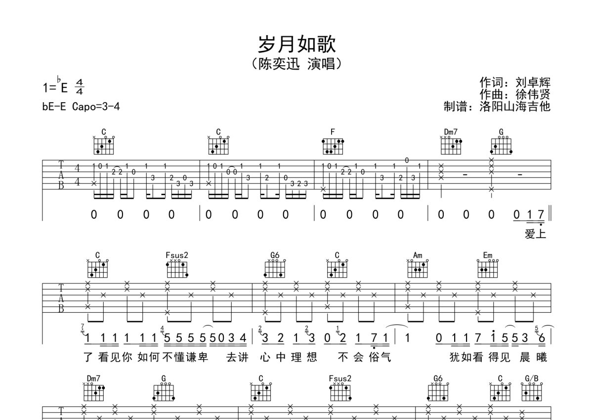 陈奕迅《岁月如歌》吉他谱 - C调弹唱六线谱