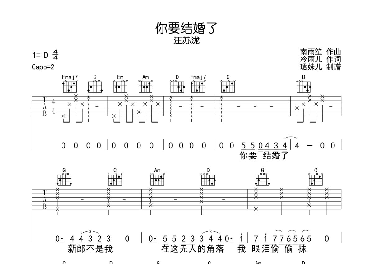 汪苏泷《你要结婚了》吉他谱 - C调弹唱六线谱