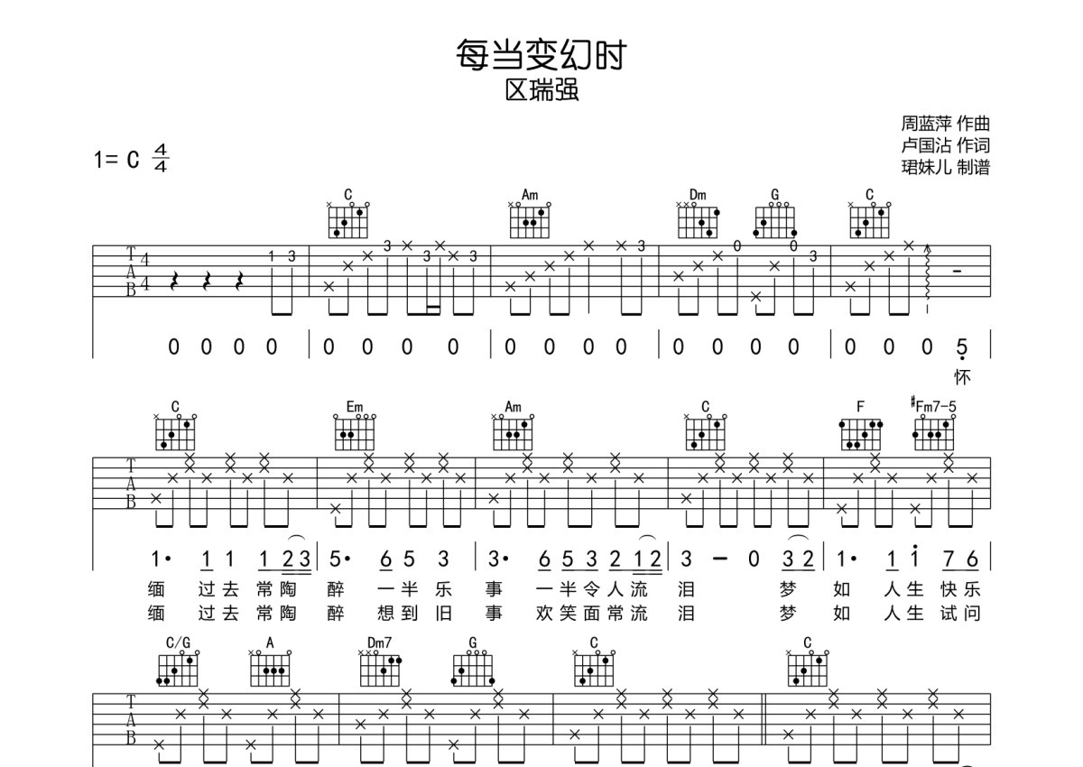 区瑞强《每当变幻时》吉他谱 - C调弹唱六线谱