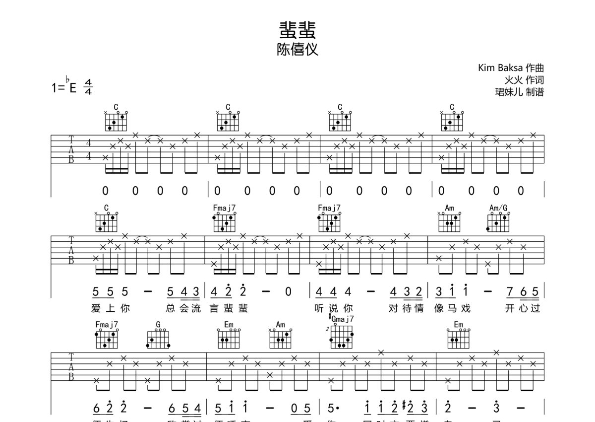 陈僖仪《蜚蜚》吉他谱 - C调弹唱六线谱