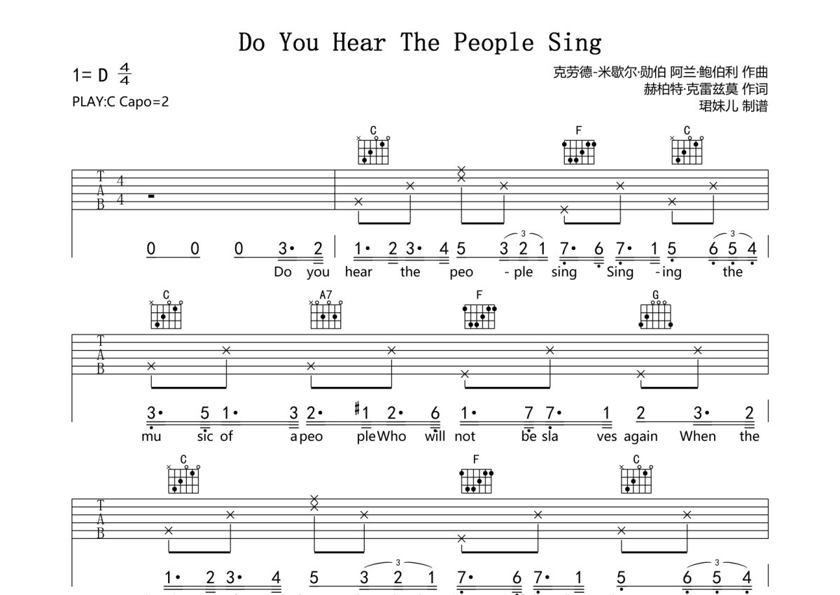 悲惨世界《Do You Hear The People Sing》吉他谱 - C调弹唱六线谱