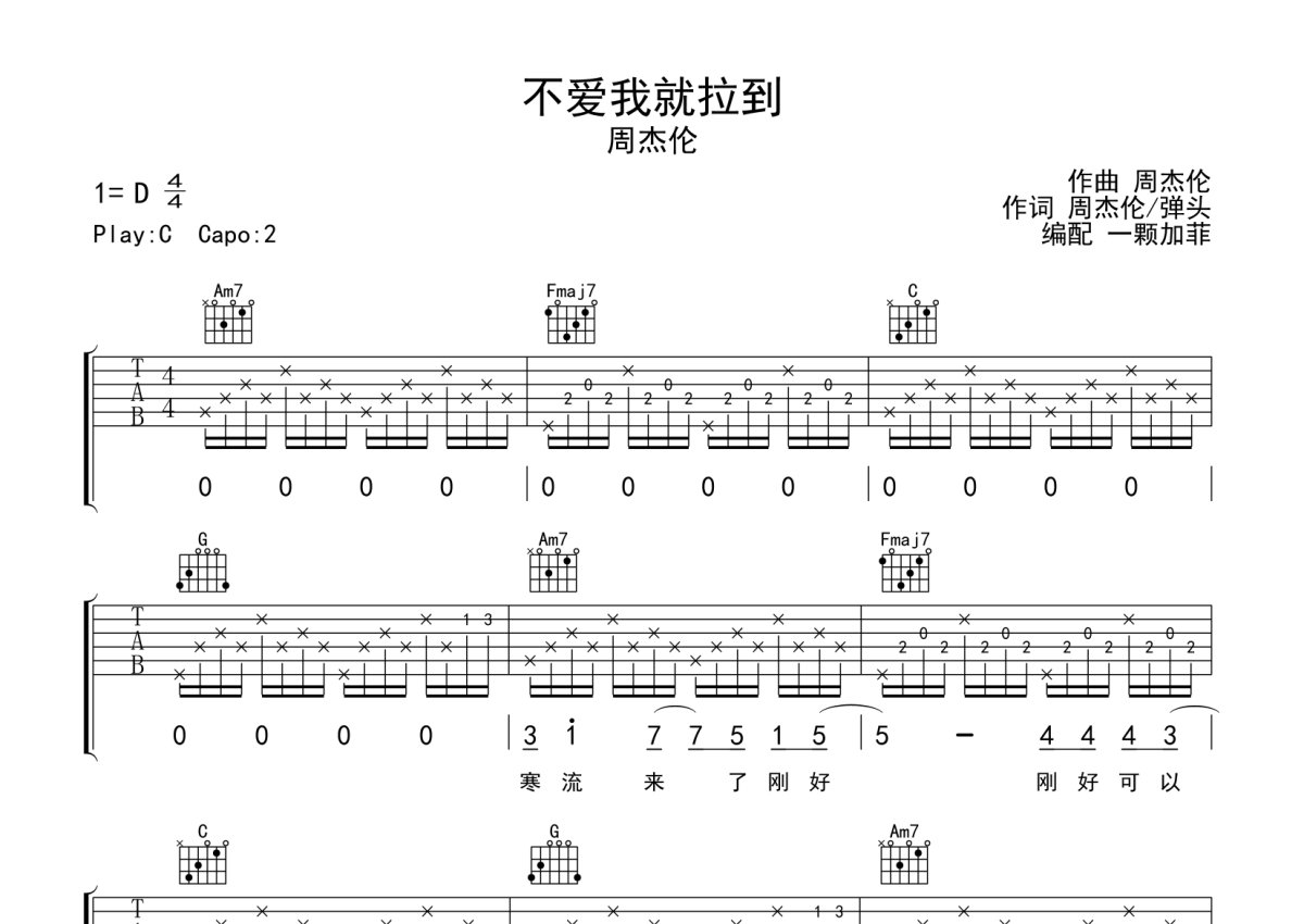 周杰伦《不爱我就拉倒》吉他谱 - C调弹唱六线谱 - 完整编配版
