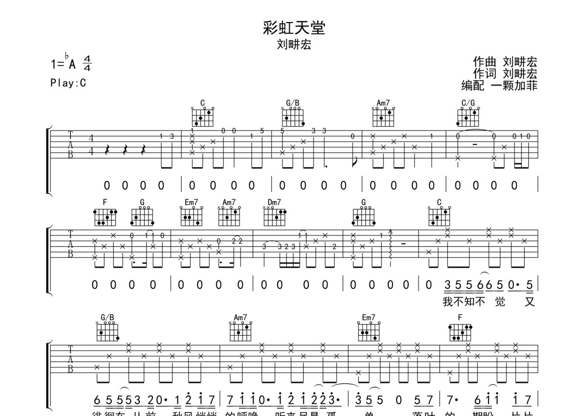 刘畊宏《彩虹天堂》吉他谱 - C调弹唱六线谱 - 完整编配版