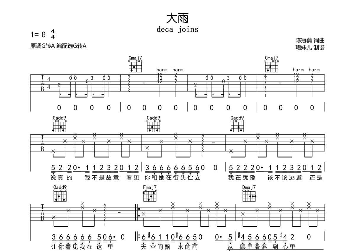 deca joins《大雨》吉他谱 - G调弹唱六线谱