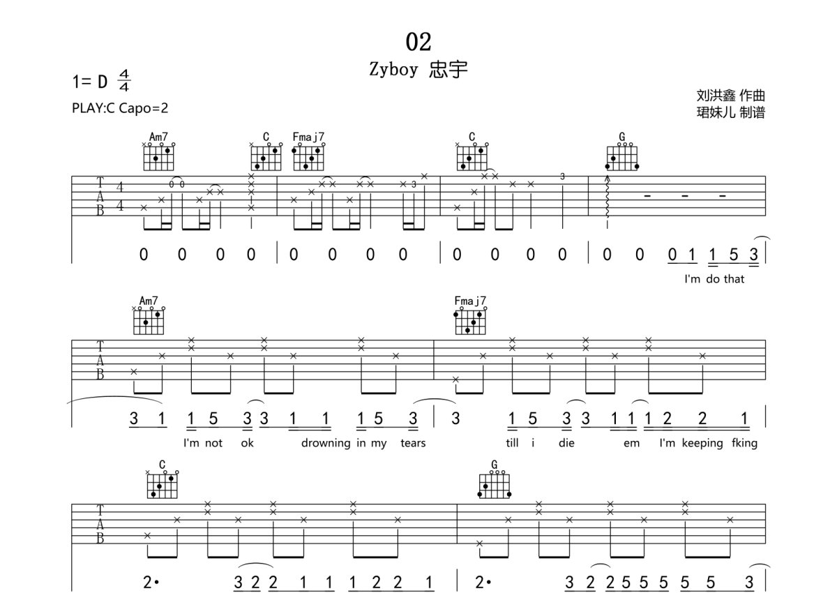 Zyboy 忠宇《02》吉他谱 - C调弹唱六线谱