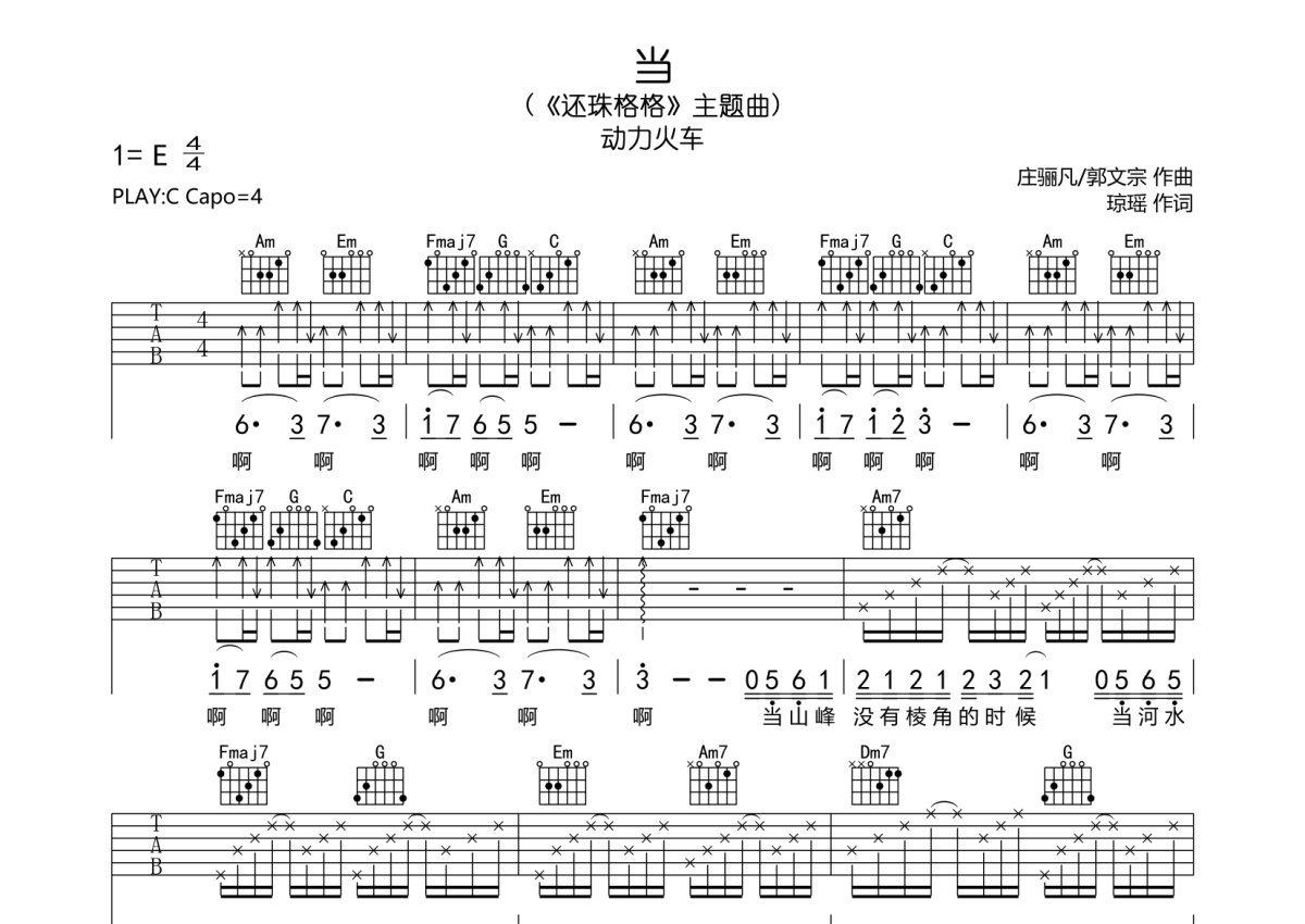 动力火车《当》吉他谱 - C调弹唱六线谱