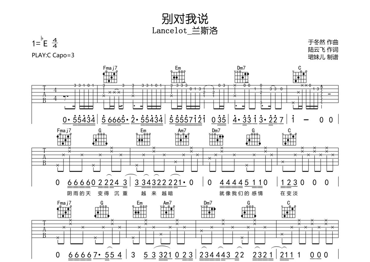 Lancelot_兰斯洛《别对我说》吉他谱 - C调弹唱六线谱