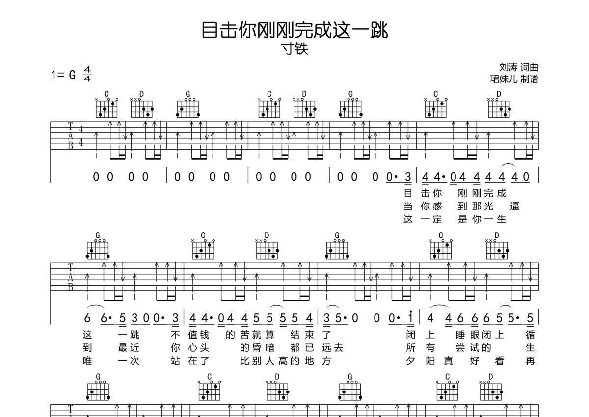 寸铁《目击你刚刚完成这一跳》吉他谱 - G调弹唱六线谱