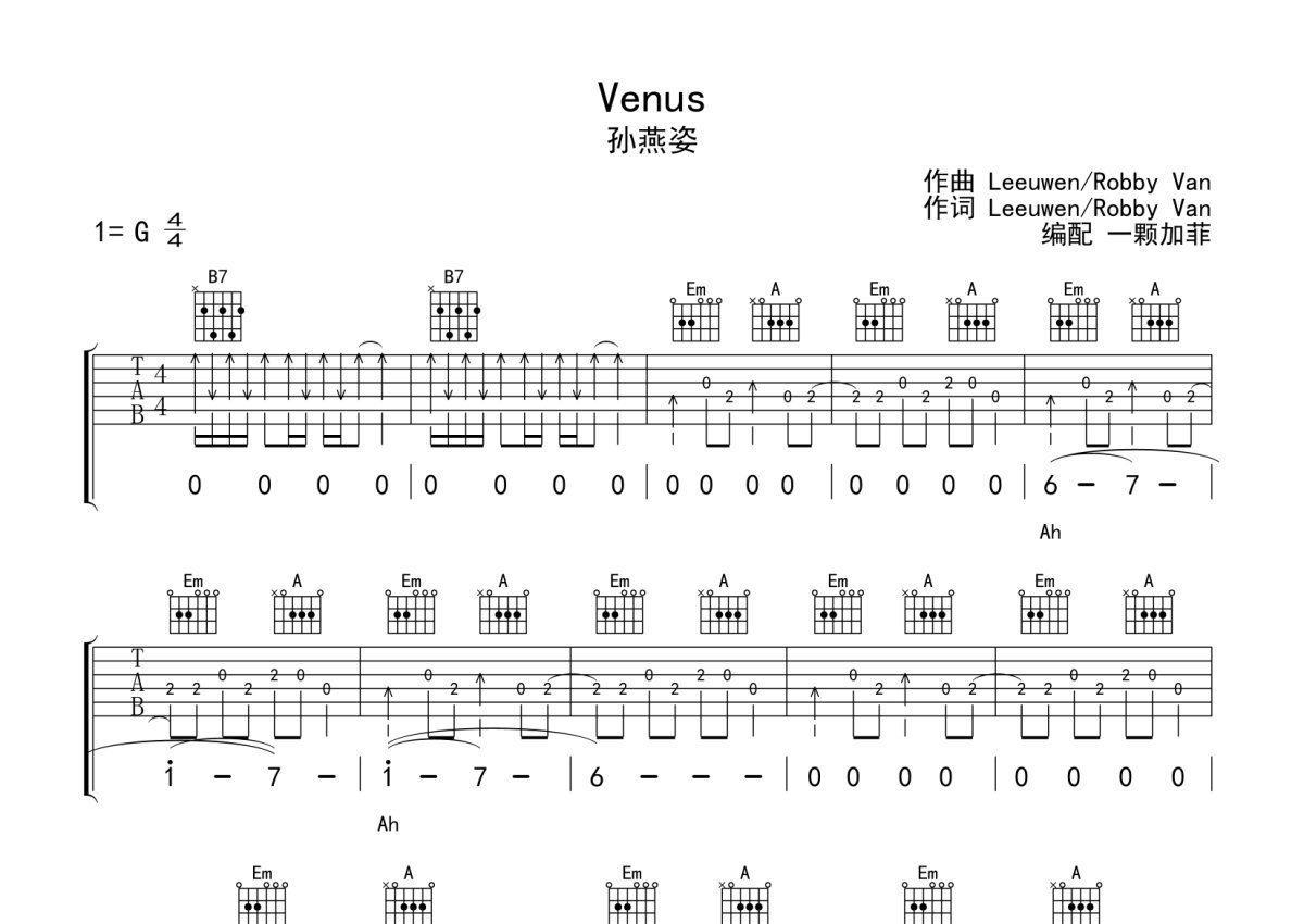 孙燕姿《Venus》吉他谱 - G调弹唱六线谱 - 完整编配版