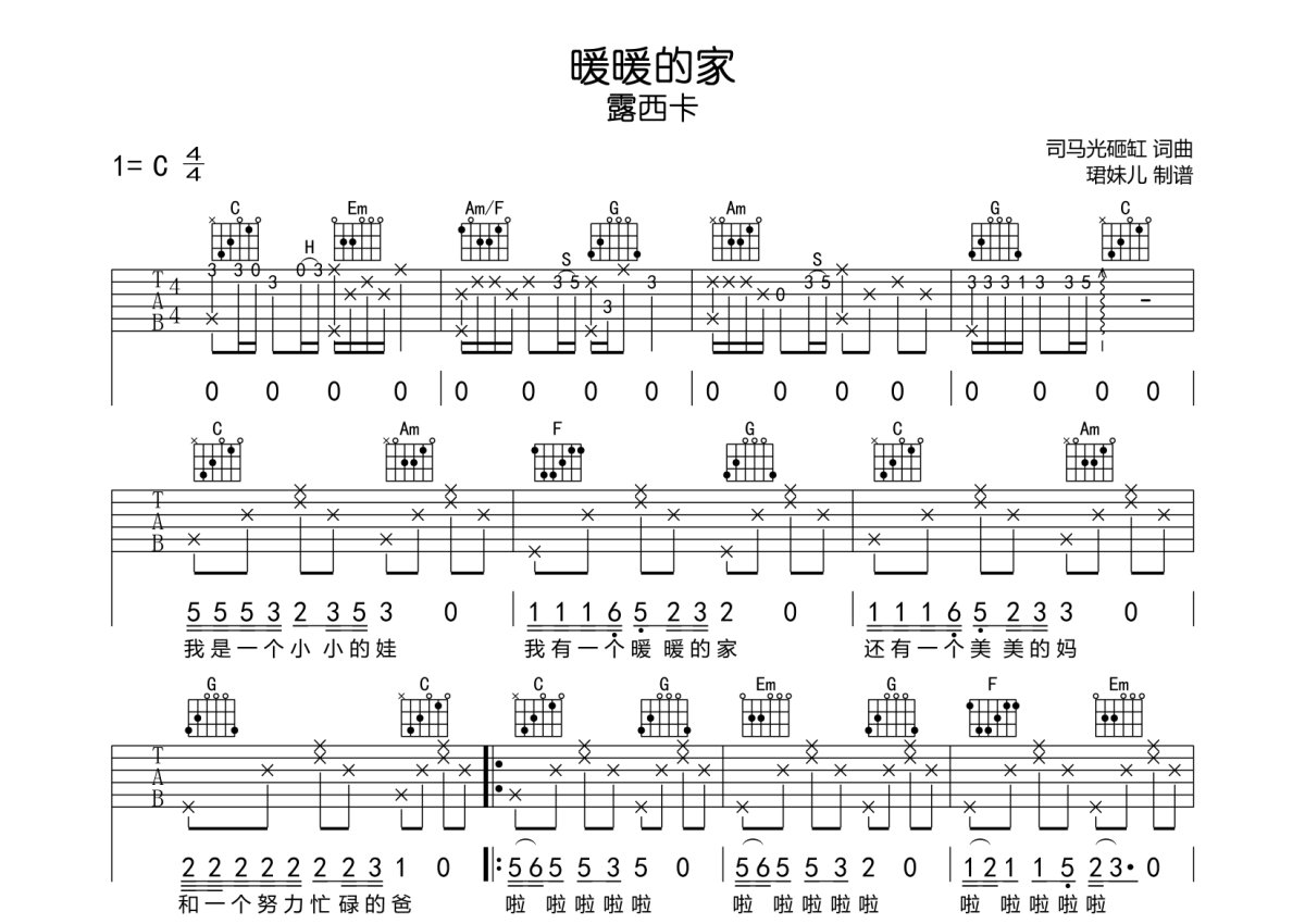 露西卡《暖暖的家》吉他谱 - C调弹唱六线谱
