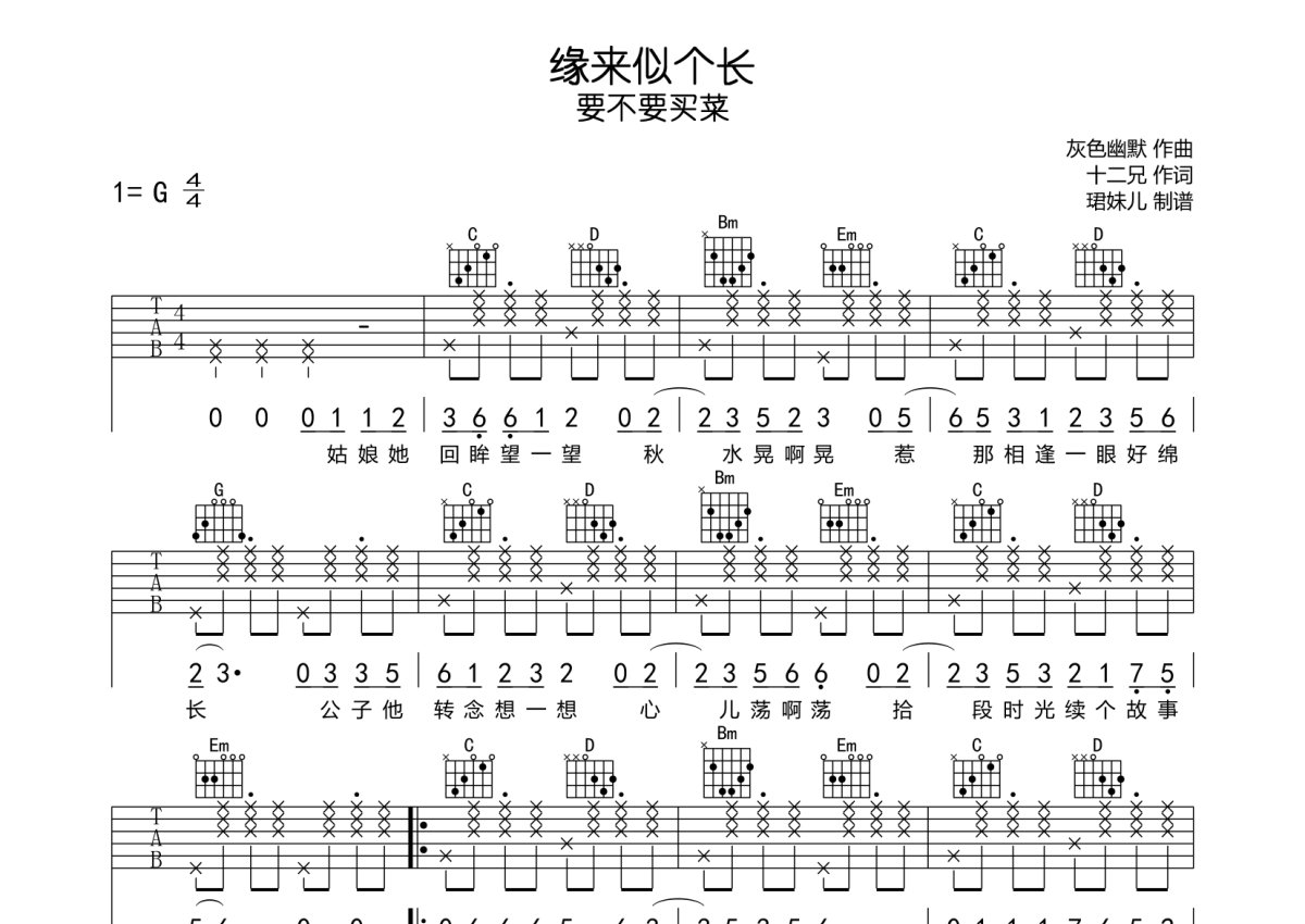 要不要买菜《缘来似个长》吉他谱 - G调弹唱六线谱