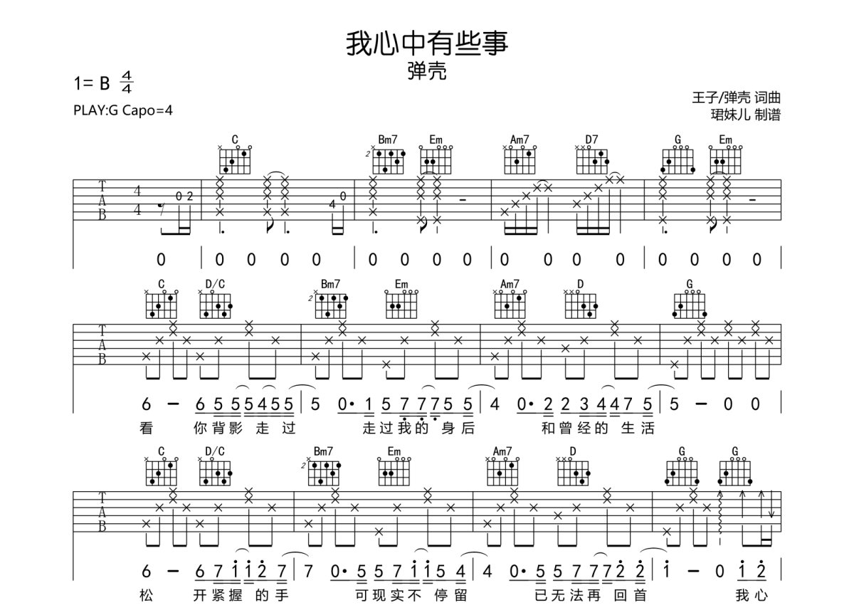 弹壳《我心中有些事》吉他谱 - G调弹唱六线谱