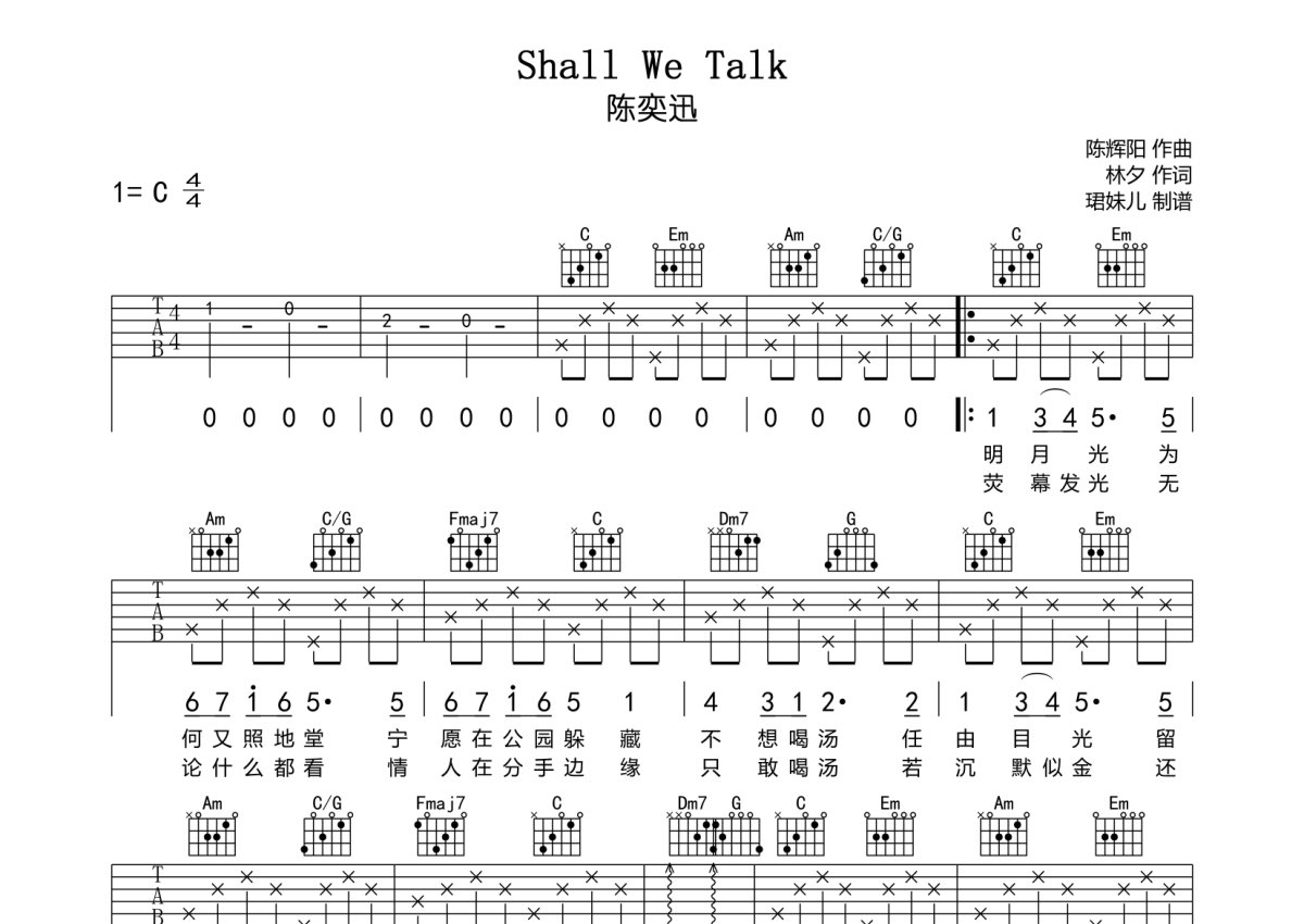 陈奕迅《Shall We Talk》吉他谱 - C调弹唱六线谱