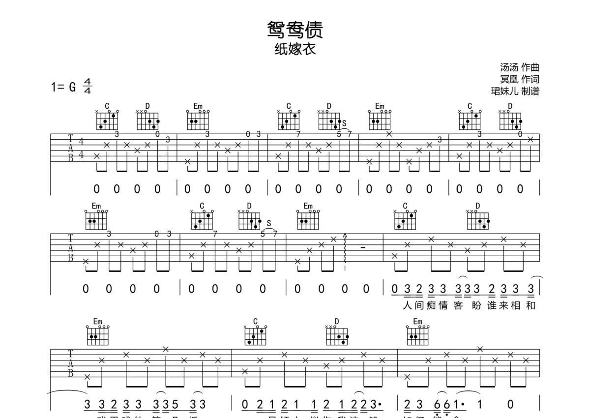 纸嫁衣《鸳鸯债》吉他谱 - G调弹唱六线谱