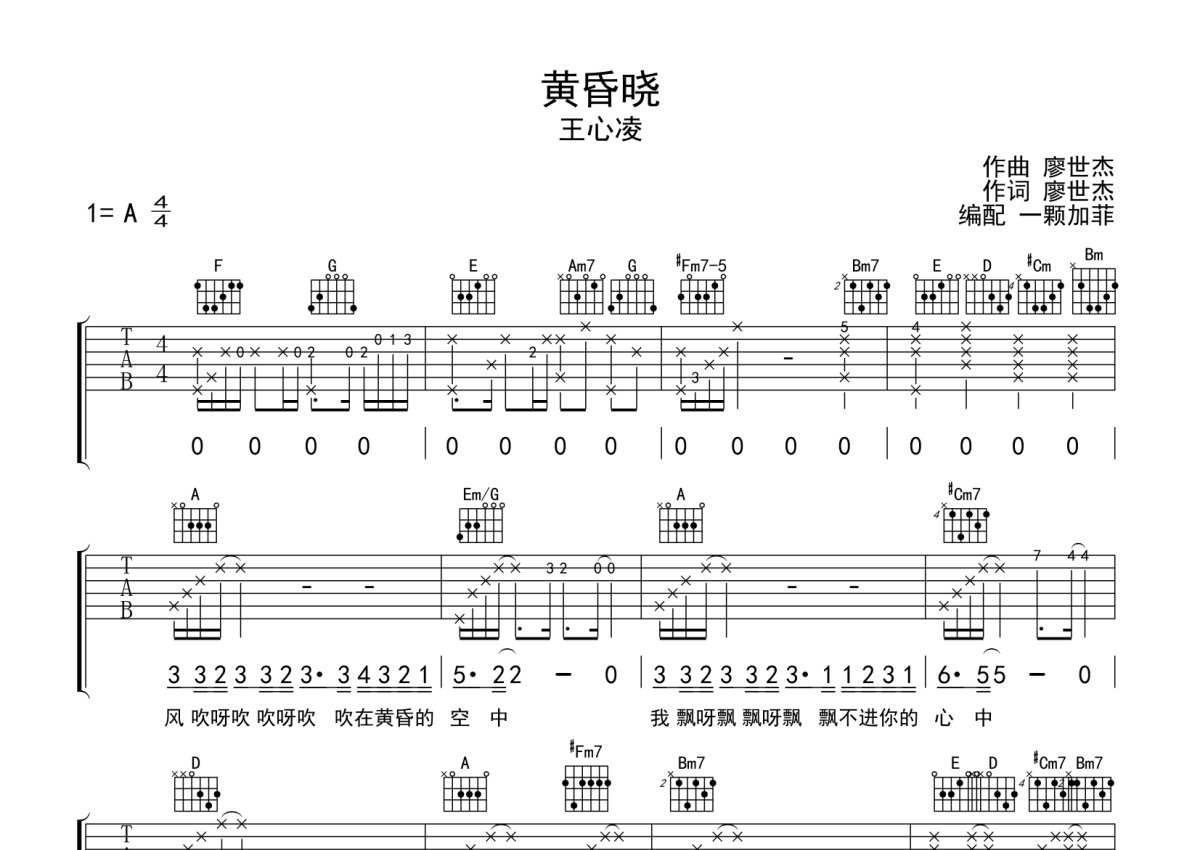 《黄昏晓》是王心凌演唱的一首歌曲,完整编配版,本吉他谱采用的是A调指法编配,这份吉他谱共有三张高清图谱,图谱由 @一颗加菲 编配上传,图谱使用六线谱编配,包含吉他和弦指法、简谱以及歌词部分,曲谱配备了相关的音频提供试听,使用这份黄昏晓吉他谱,可以让你更加方便地掌握这首歌曲的弹唱技巧,快来尝试吧。